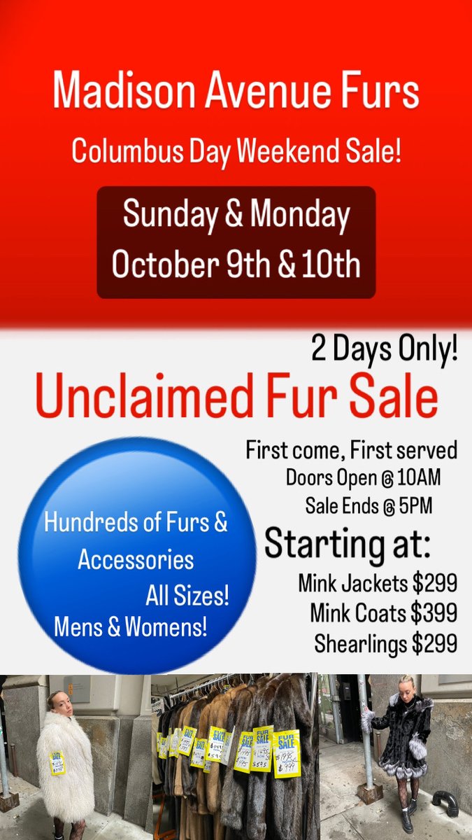 Head's Up: Unclaimed Fur Sale 10/09/2022-10/10/2022